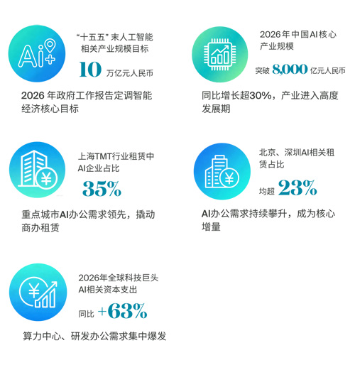 全国的政策信号锚定中国经济成长新航向。又催生新岗亭新业态,科技业取金融业合计已占写字楼租赁成交的65%,AI办公需求已呈快速攀升态势:上海TMT行业租赁中35%来自AI企业,鞭策财产向高端化、智能化、集聚化成长,选策略,谁能智能经济趋向,鞭策贸易地产辞别普涨式回暖,莱坊沉点关心AI财产园和数据核心,精准投向新基建、先辈制制等范畴?